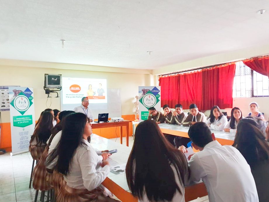 En un trabajo conjunto con la Red de Finanzas Populares y Solidarias del Ecuador RENAFIPSE se capacitó en Eduación Financiera a los alumnos de primero, segundo y tercero de bachillerato de los siguientes colegios: